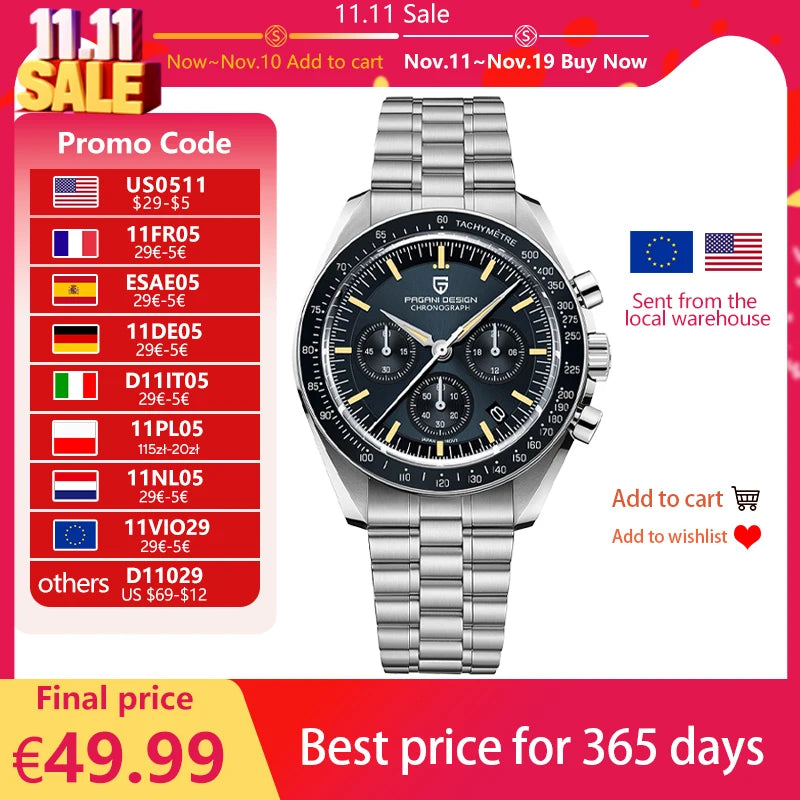 Pagani Design CK2998 Moon Watch Tribute Stainless Steel Chronograph
