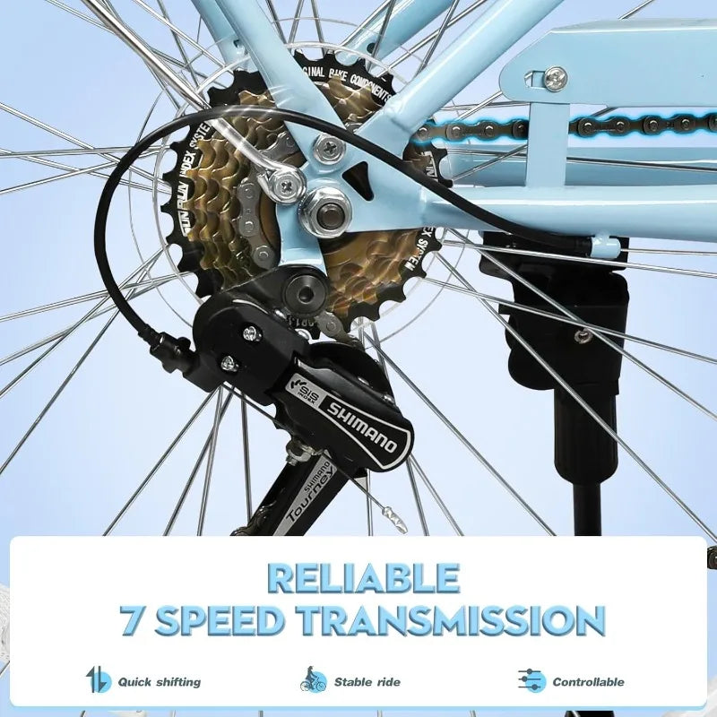 Folding Commuter/Beach Cruiser Bike Women 7 Speed
