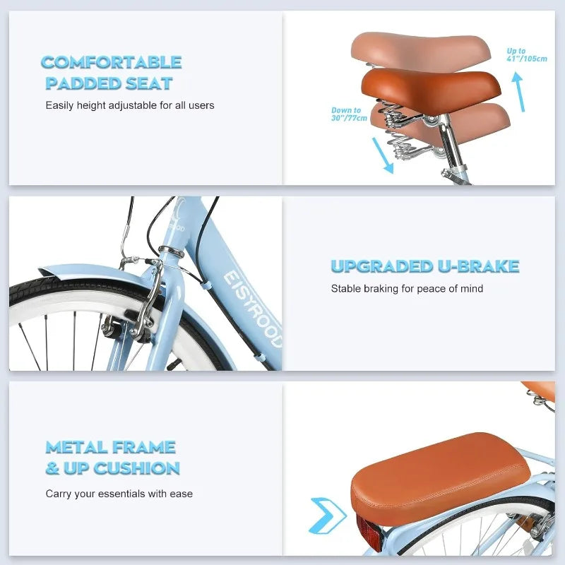 - Durable Steel Frame and Fork — Built for your everyday rides with dependable strength, longevity, and a smooth, stable feel.