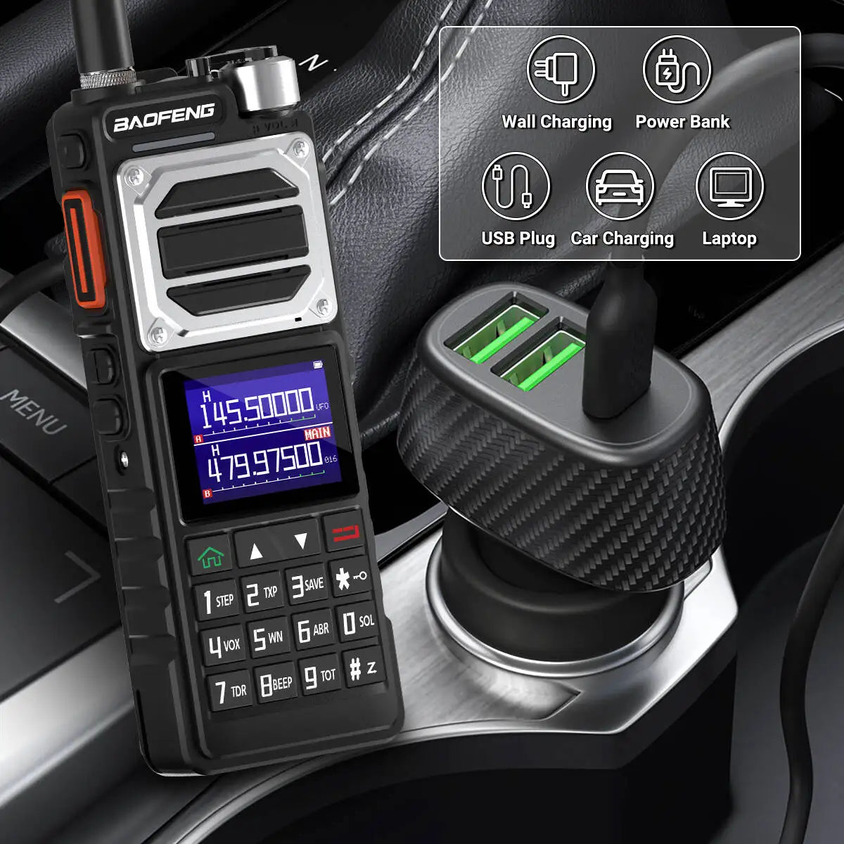 Experience seamless communication with the Baofeng UV-25 Multi Band Walkie Talkie Two Way Radio, designed for adventurers and professionals alike. This portable radio offers an impressive maximum range of 5km to 10km, making it ideal for outdoor activities such as hiking, camping, or team coordination during events.
