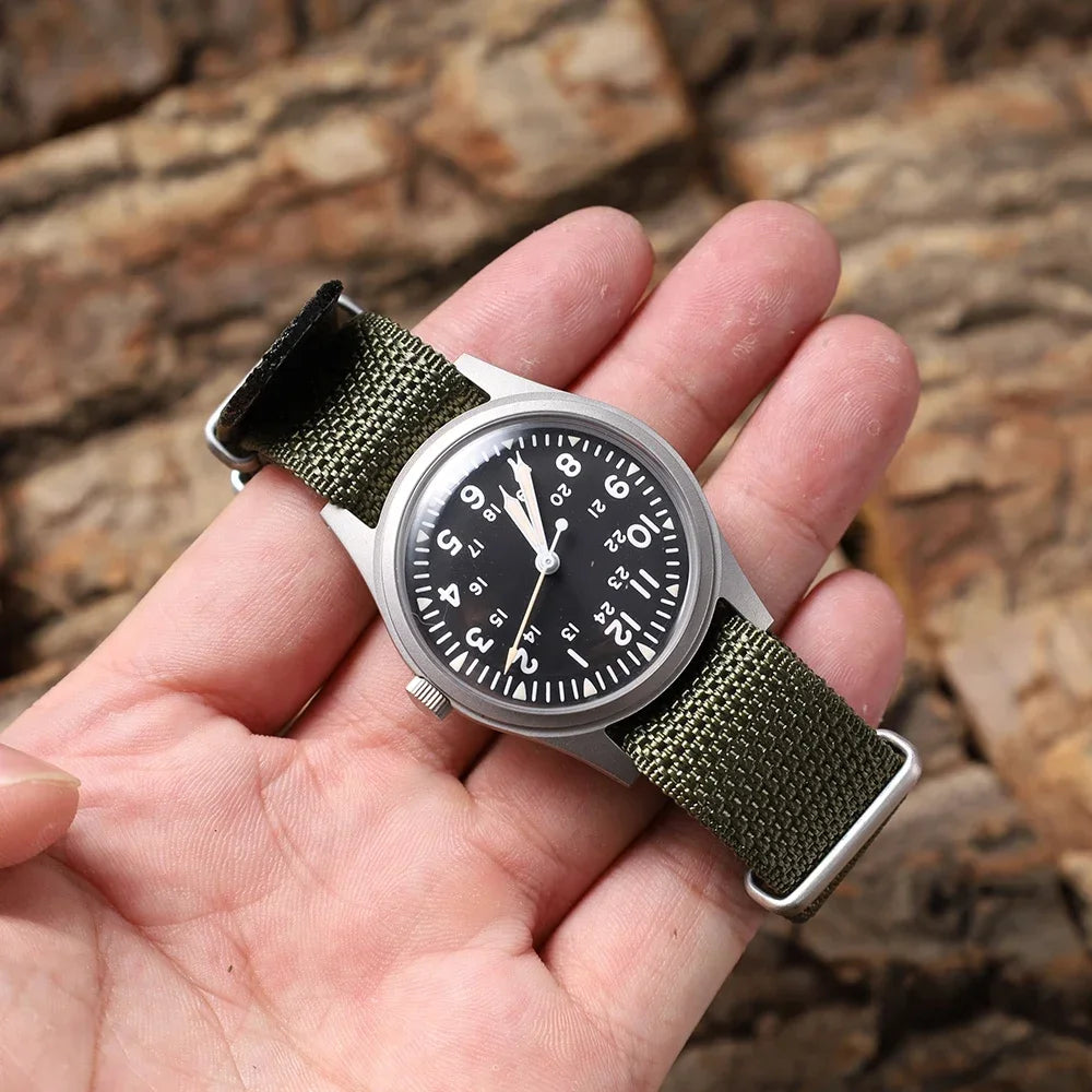 RDUNAE G10 34.5mm Retro Military Watch 316L Stainless Steel K1 Mineral Glass Luminous Personality Sports Quartz Men Pilot Watch